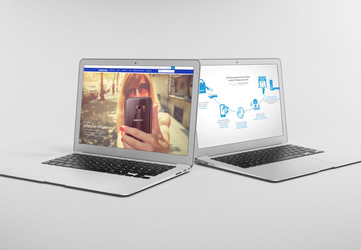 Trabalhamos em parceria com a Bold no desenvolvimento do site para o programa Galaxy para Sempre. Nesse projeto, os usuários tinham a opção de efetuar pagamentos mensais, e após 12 meses, podiam realizar a troca de seus dispositivos, pagando um valor inferior ao preço original. O site foi concebido no formato de uma única página, apresentando uma experiência fluida e envolvente. À medida que os usuários percorriam a página, eram surpreendidos por animações que revelavam de forma dinâmica o conteúdo disponível.
